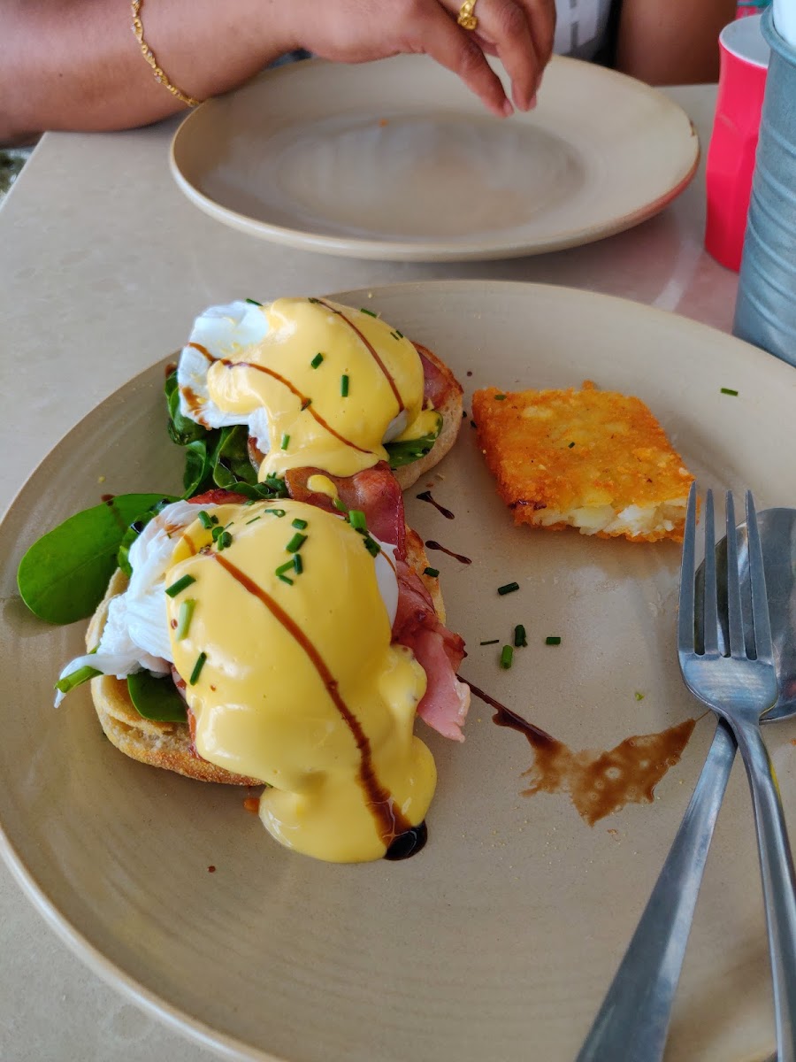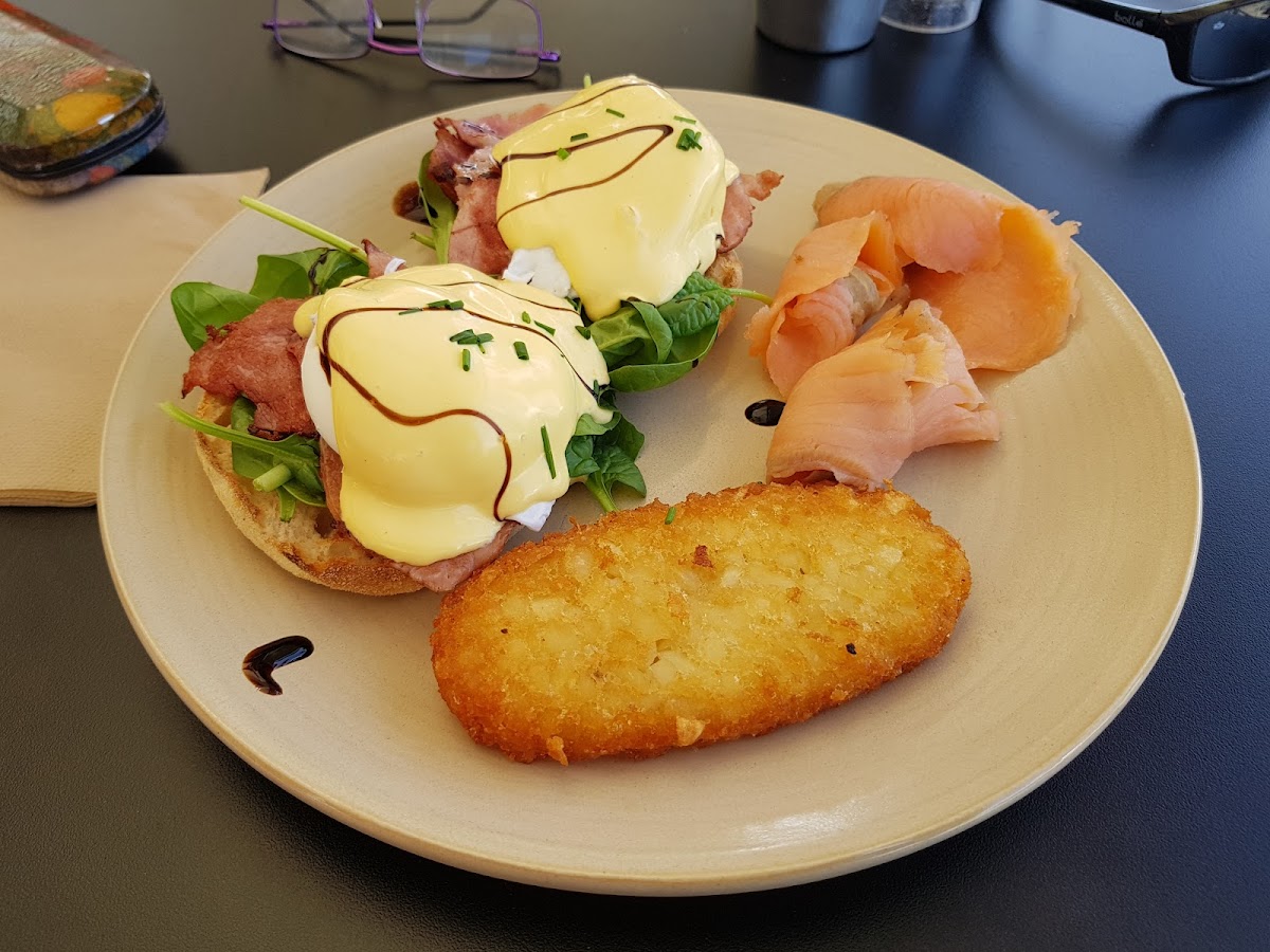 Great Eggs Benny , and Mixed Berry smoothie. Friendly staff. Good area , but not good views today.