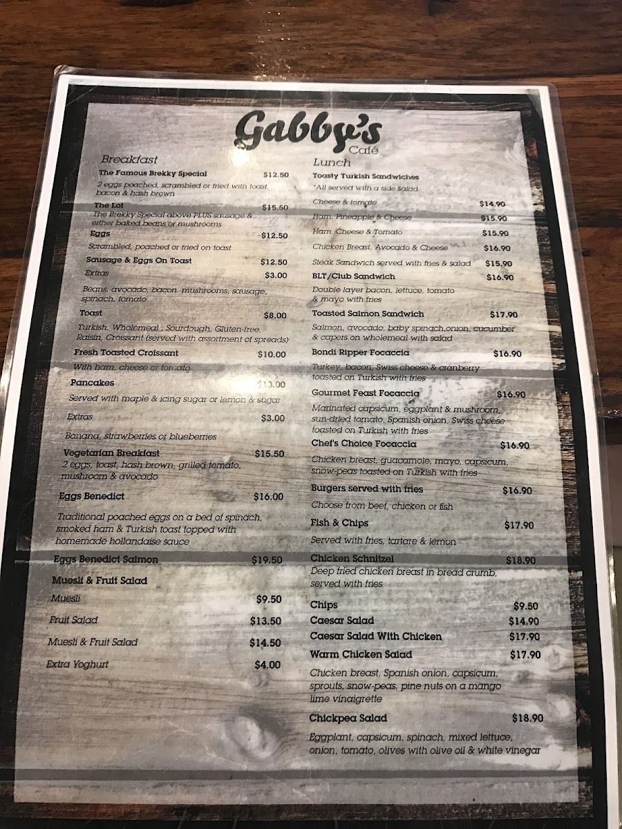 Gabby’s Cafe offers a simple yet satisfying menu that suits a laid-back beachside setting. The focus is on casual bites and comforting drinks, perfect for starting the day or relaxing after a walk along Bondi Beach. Whether you’re settling in for breakfast or looking for a light lunch, the offerings reflect a balance of familiar favorites and fresh flavors.